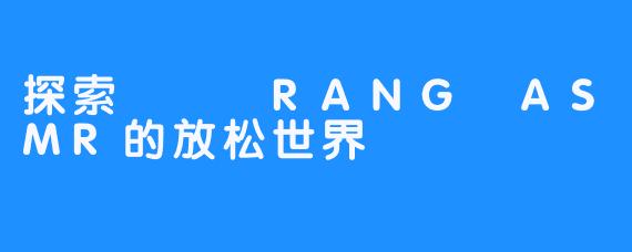 在当今快节奏的生活中,许多人渴望通过独特的方式放松身心,而ASMR(自主感觉经络反应)便应运而生。Grace 的 ASMR 频道以其温柔的声音和细腻的内容吸引了大量粉丝。Grace 擅长使用各种声音,…