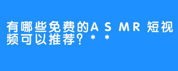 随着网络的发展,ASMR(自发性感觉经络反应)逐渐成为一种流行的放松方式,许多网友通过它来减轻压力和焦虑。在这个领域,有许多优秀的女主播提供免费的ASMR视频,助力大家在忙碌的生活中找到宁静。首先,…