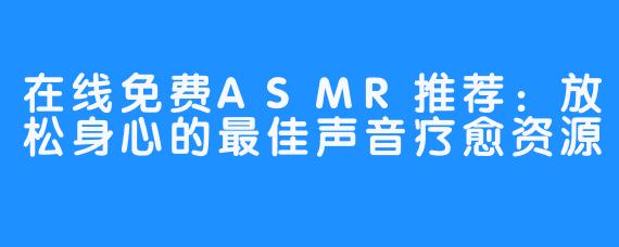 什么是SportyASMR?它和传统ASMR有什么区别?