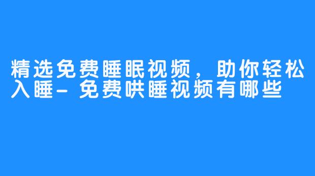 入眠困难是很多人普遍遇到的问题,这让很多人处于失眠的状态,因此,找到有效安眠的方法就显得尤为重要。免费哄睡视频是一种有效的安眠方式,通过视频内容帮助你快速进入深度睡眠,来改善睡眠质量。下面介绍几款常见的免费哄睡视频,可以根据自身的情况选择合适的视频。 第一款是耳朵计划,它提供了一系列安定耳朵内容,有助于安眠,帮助你快速进入深度睡眠,帮助改善睡眠质量。耳朵计划可以在YouTube上观看,里面有热水浴、节奏音乐、故事书、数学问题视频等。 第二款是睡眠精灵,它有一系列安定内容,内容涵盖音乐、放松练习、童话故事、声音短剧和播客等,帮助你轻松入睡。它还有十种方言的指引,可以帮助听觉安定,更能带来安眠体验。 第三款是睡眠星,它是一款以视觉安定的方式安眠,播放各种放松互动内容,它可以帮助你快速进入深度睡眠,让你身心放松,帮助你改善睡眠质量。 第四款是入眠社区,它提供各种安定视频和讲解,使用恬静的安定文字和声音,帮助你进入深度睡眠,增加睡眠质量。 这些免费哄睡视频都能让你轻松享受安眠,改善你的睡眠质量。免费睡眠视频提供了很多安定内容和方式,帮助你快速进入深度睡眠,如果你合理选择,就能让你得到有效的安眠体验。