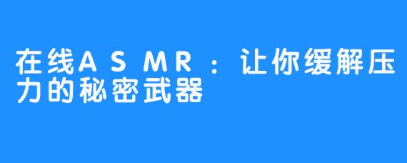 近年来,生活节奏越来越快,人们由于工作繁忙、学习压力大,一些压力症状也随之而至,如头痛、健忘、郁闷等。而ASMR(自动舒缓回应)正是帮助大家缓解这些压力的“秘密武器”。 ASMR是一种以低声、低频率的普通语言来触发的身心安宁感,比如柔和的声音、温暖的手指细语、细腻的触摸等等,它能让人放松自己的神经、减少紧张的情绪,从而缓和焦虑症状和压力症状。 现在已经有很多的在线ASMR资源可供大家使用,我们可以通过YouTube、网站和社交媒体渠道,浏览、欣赏和探讨关于ASMR的各种资源,从而让自己尽情享受这种安定、舒适的安定感。 除了视频外,还有一些企业专门提供ASMR音频资源,比如Calm Radio、TuneIn等,消磨时间的同时,还能享受一份深度的放松、学习和安宁感。 虽然ASMR对大多数人有很大的帮助,但与普通娱乐活动相比,专门观看ASMR的程度却不高,而且沉溺于ASMR资源花费的时间也太长了,可能对正常的生活有所影响。所以,以合理的方式来享受ASMR,是大家的应该做到的。 总的来说,ASMR目前已经成为了许多人缓解压力的秘密武器,相应的在线资源也应运而生,消磨时间的同时,大家也可以从中获得一份深度的放松、学习和安宁感。