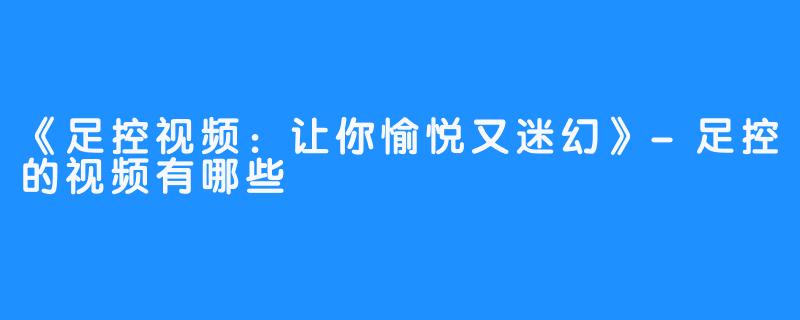 足控着迷毋庸置疑,经常会出现在社交媒体上,尤其是抖音社区,画面精彩绝伦,节奏精湛,实在是一种别样的花样绽放。那么关于足控的视频有哪些呢?