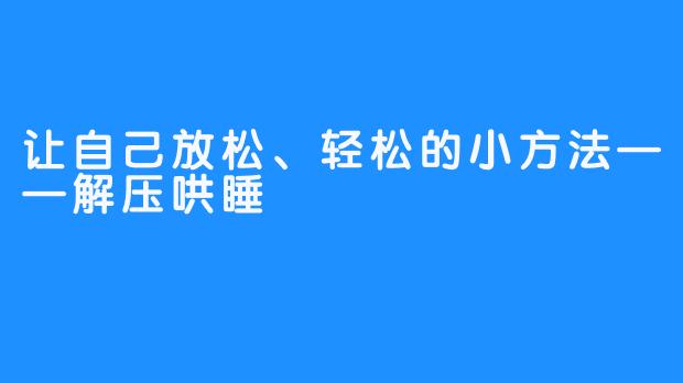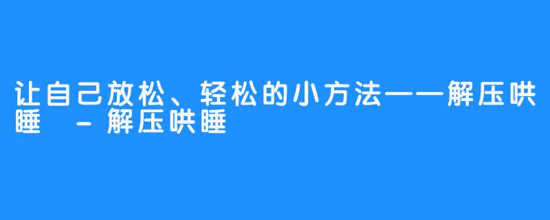 每一天,我们都要承受很多压力,情绪上也对自己要求很多。对于一些压力大的人来说,这样的日常生活会让他们身心疲劳,甚至可能出现抑郁心理的情况,这样的状态一般要持续一段时间,如果不加以处理,也可能会出现一些更糟的结果。 不过可以有一种轻松的方式来解除身心疲劳,那就是"解压哄睡",也就是说,可以在头脑累坏的时候,用一些放松的办法处理情绪,以达到有效缓解身心压力的效果。 比如,可以做一些有趣的事情,比如看看有趣的书籍、观看有趣的影片、听听欢快的歌曲,这些可以令人放松,也可以增增加精神活力。 假如是非常累的时候,可以选择一些比较浅的安静活动,比如读一些文学作品,给自己大量的放松时间,体会一下这样洒脱的心情。这些能让自己获得更有效的放松和舒缓,并且也能让自己明显的提高睡眠质量,能够得到一个充满活力的新一天! 至于实行"解压哄睡"的完美时刻,长时间的积累和劳累都可以在晚上发挥出有效的疗效,这样就能够更规律的睡眠,更高效地进行一天的工作生活。只要运用合理的放松方法,减少手机的使用,多做一些自己喜欢的事情,便可以获得心理和身体上良好的放松和哄睡效果。