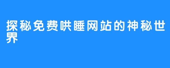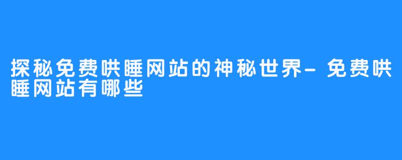 近年来,随着人们对睡眠质量的重视,免费哄睡网站也逐渐成为了大家关注的焦点。这些网站通过播放柔和的音乐、自然的声音和讲述入眠故事等方式,帮助用户快速进入梦乡。那么,究竟有哪些免费哄睡网站可以让人在短时间内入睡呢? 首先,最为知名的免费哄睡网站莫过于Calm和Headspace。这两家网站都提供了丰富的音频资源,让用户可以选择适合自己的哄睡音频,帮助他们快速放松身心、入睡。而且,这些网站还定期更新内容,保证用户可以享受到高质量的睡眠体验。 此外,还有一些小众但同样优质的免费哄睡网站,比如Sleepo、Sleep Cycle、Sleepa等。这些网站提供了各种各样的哄睡音频,从雨声、海浪声到独特的仪器声音等等,种类繁多,满足了不同用户的需求。 总的来说,免费哄睡网站虽然不如收费哄睡应用那么普及,但也同样有着优质的服务和资源。通过这些网站,我们可以在短时间内得到放松、进入睡眠状态,为我们的身心健康保驾护航。希望大家可以尝试这些免费哄睡网站,找到适合自己的哄睡音频,享受每晚的美好睡眠。愿大家都能拥有一个甜美的梦乡!