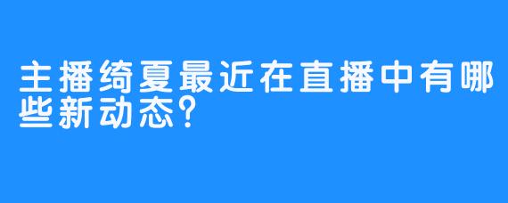 主播绮夏最近开始尝试新的互动游戏,并与粉丝分享了她的日常生活,受到了大家的热烈欢迎。