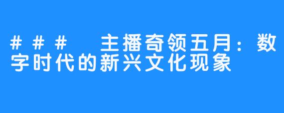 随着互联网的发展,直播行业近年来蓬勃兴起,其中“主播奇领五月”成为了一个引人注目的现象。每年五月,众多主播聚集于此,进行一系列精彩的直播活动,吸引了数以万计的观众。这不仅是主播们展现才艺的舞台,更是粉丝们互动交流的盛宴。 “主播奇领五月”通过丰富多彩的内容和活动,涵盖了游戏直播、才艺表演、知识分享等多个领域,使得各类观众都能找到自己的兴趣点。主播们不仅展现了个人魅力,更通过直播传递了积极向上的价值观。在这个过程中,观众与主播之间的紧密互动,形成了一种新型的社交方式,使得彼此的关系更加紧密。 此外,随着技术的不断进步,直播平台也在不断创新,提升用户体验。从虚拟现实到互动游戏,这些新元素的加入,使得“主播奇领五月”更具吸引力。可以说,这是一场科技与文化的盛宴,它不仅是电竞爱好者的狂欢,也是网络文化的一次重要展现。 总的来说,主播奇领五月不仅是一种娱乐方式,更是一种现代社会的文化现象,展现了直播行业的未来发展方向。