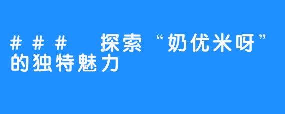 “奶优米呀”是一种新兴的饮品,近年来在年轻人中受到了广泛的欢迎。这款饮品以其独特的口感和丰富的营养成分,吸引了不少消费者的目光。 首先,“奶优米呀”采用优质的牛奶和精选的米粉作为主要原料,融合了奶香与米香,带来了前所未有的味觉体验。饮用时,顺滑的奶油感和米香的醇厚恰到好处,让人一口接一口,难以抵挡。 其次,这款饮品还富含多种营养成分,如维生素、矿物质和膳食纤维等,对身体健康大有裨益。在追求健康饮食的今天,“奶优米呀”成为了不少人日常生活中的美味补充。 总之,“奶优米呀”凭借其独特的风味和营养价值,正在快速崛起为一种新潮流饮品,值得每一个喜爱尝鲜的你来品尝。