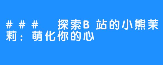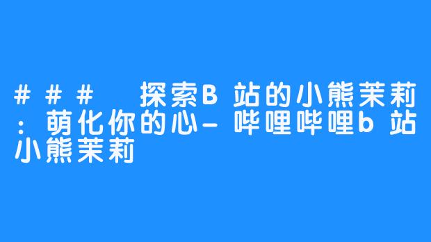 在中国的视频分享平台——哔哩哔哩(B站)上,小熊茉莉凭借其可爱的形象和独特的个性,吸引了大量粉丝的关注。小熊茉莉是一只活泼的小熊,以清新的活力和幽默的言谈受到了年轻观众的喜爱。她的形象不仅可爱,还常常兼具搞笑与治愈,带给观众欢乐与温暖。 小熊茉莉的短视频内容丰富多彩,包括搞笑短片、生活分享、动漫推荐等。她通过生动的表情和幽默的配音,令观众在轻松愉悦中感悟生活的点滴。尤其是她与观众的互动,让人感觉仿佛身边有一个亲密无间的小伙伴。 此外,小熊茉莉还积极参与B站的一些活动和挑战,展现了其多才多艺的一面。无论是唱歌、跳舞,还是进行创意DIY,她总能带来惊喜与笑声。对她的关注,不仅是一种对可爱形象的喜爱,更是对一种积极、向上生活态度的认同。 总的来说,小熊茉莉不仅仅是B站上的一个虚拟角色,她更是现代年轻人心灵深处的一个寄托。通过她的陪伴,许多人找到了生活中的乐趣与力量。无论何时,只要在B站上看到小熊茉莉,心情总会变得格外美好。