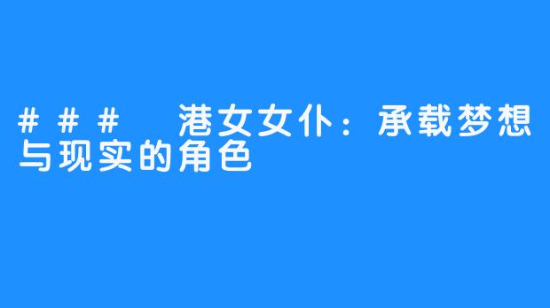 在香港快速发展的都市生活中,“港女女仆”这一概念逐渐引起了社会的关注。她们不仅是家庭的帮手,更是承担着多重角色的女性。港女女仆通常负责日常的家务、照顾孩子以及老人,工作内容繁琐,但她们却以温柔与耐心赢得了家庭的信任。 然而,这一职业背后隐藏着许多不为人知的故事。许多港女女仆来自外地,带着对生活的期盼与梦想来到香港,但现实的工作压力和生活成本常常让她们感到疲惫。她们在为家庭服务的同时,也希望能提升自己的职业技能,实现个人价值。尽管如此,社会对女仆的偏见与歧视仍然存在,导致她们的工作难以获得应有的尊重。 总体而言,港女女仆这一职业群体在城市中扮演着重要的角色。她们不仅是家庭的支柱,也是推动社会发展的无形力量。通过对她们的理解与尊重,我们或许能为她们创造一个更好的工作与生活环境,彰显女性的坚韧与智慧。