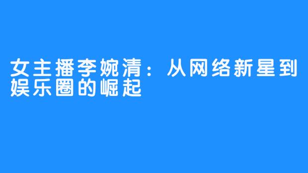 李婉清,这位年轻的女主播,凭借其出色的才华和迷人的外表,在网络直播平台迅速崭露头角。她以幽默风趣的直播风格和真实可爱的个性,吸引了大量粉丝的关注。李婉清不仅会唱歌跳舞,还擅长与观众互动,营造出轻松愉快的氛围。 在她的直播间中,总是充满了欢声笑语。她通过分享日常生活、游戏攻略以及个人心得,缩短了与粉丝之间的距离。与此同时,李婉清也不断拓展自己的领域,积极参与综艺节目和影视剧的拍摄,逐渐向娱乐圈进军。 如今,李婉清已经成为了许多年轻人的偶像,她的成功故事激励着更多人追逐自己的梦想。可以预见,未来的李婉清将继续在更广阔的舞台上绽放光彩。
