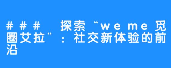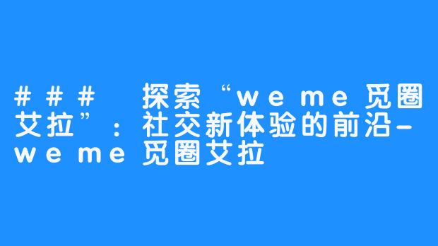在快速发展的数字时代,社交平台如雨后春笋般涌现,而“weme觅圈艾拉”便是其中的佼佼者。这款新型社交应用,旨在为用户提供一个更加真实与互动的社交环境。它以“探索、分享和连接”为核心理念,鼓励用户在虚拟空间中建立真实的社交关系。 weme觅圈艾拉的独特之处在于其多元化的功能,不仅仅是简单的消息交流,还包括兴趣圈子、线下活动推荐和个人成长模块。用户可以根据自己的兴趣加入不同的圈子,与志同道合的人探讨分享,甚至频繁组织线下见面,增加社交的真实感。 此外,平台注重用户隐私与安全,设置了多重隐私保护措施,确保用户的个人信息不被滥用。无论是想拓展社交圈,还是寻找志同道合的朋友,weme觅圈艾拉都为用户提供了一个安全、丰富的交流平台。 在未来,weme觅圈艾拉有望通过不断更新和优化,为传统社交方式注入新的活力,成为年轻人必不可少的社交工具。我们期待更多的创新功能,助力用户在社交中获得更好的体验与成长。